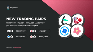 CryptoHero announces addition of new crypto trading pairs: TOMO/USDT KAI/USDT ORAI/USDT ALICE/USDT Look out for our new Mobile App version