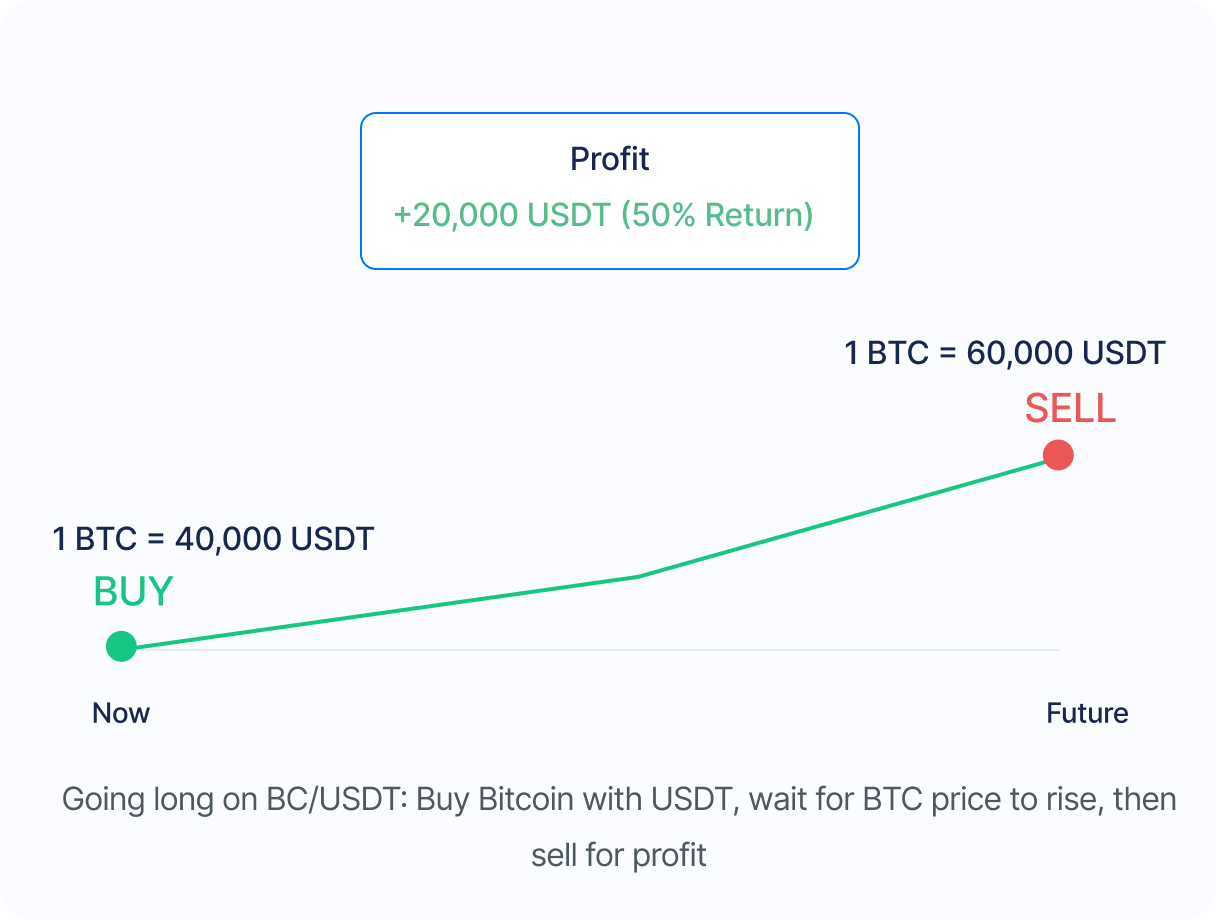 Buy low, sell high. The bot auto trades by buying crypto like Bitcoin with USDT, aiming to sell it later at a higher price — locking in gains in USDT.